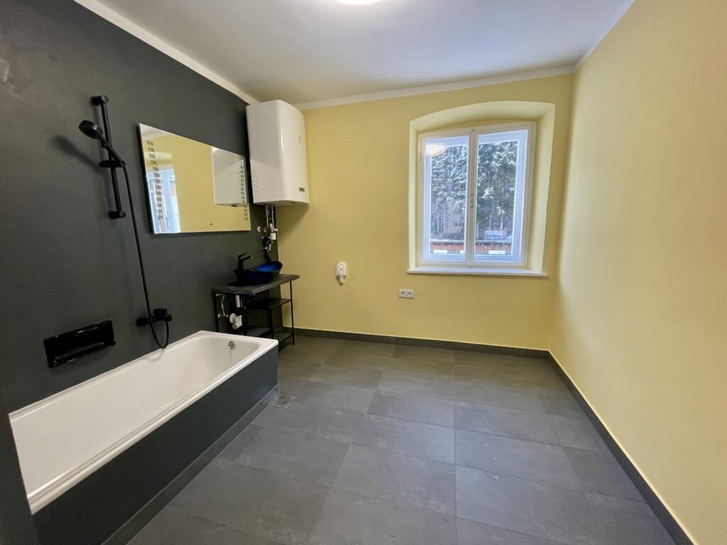 • Großzügiges Badezimmer mit Badewanne und Fenster