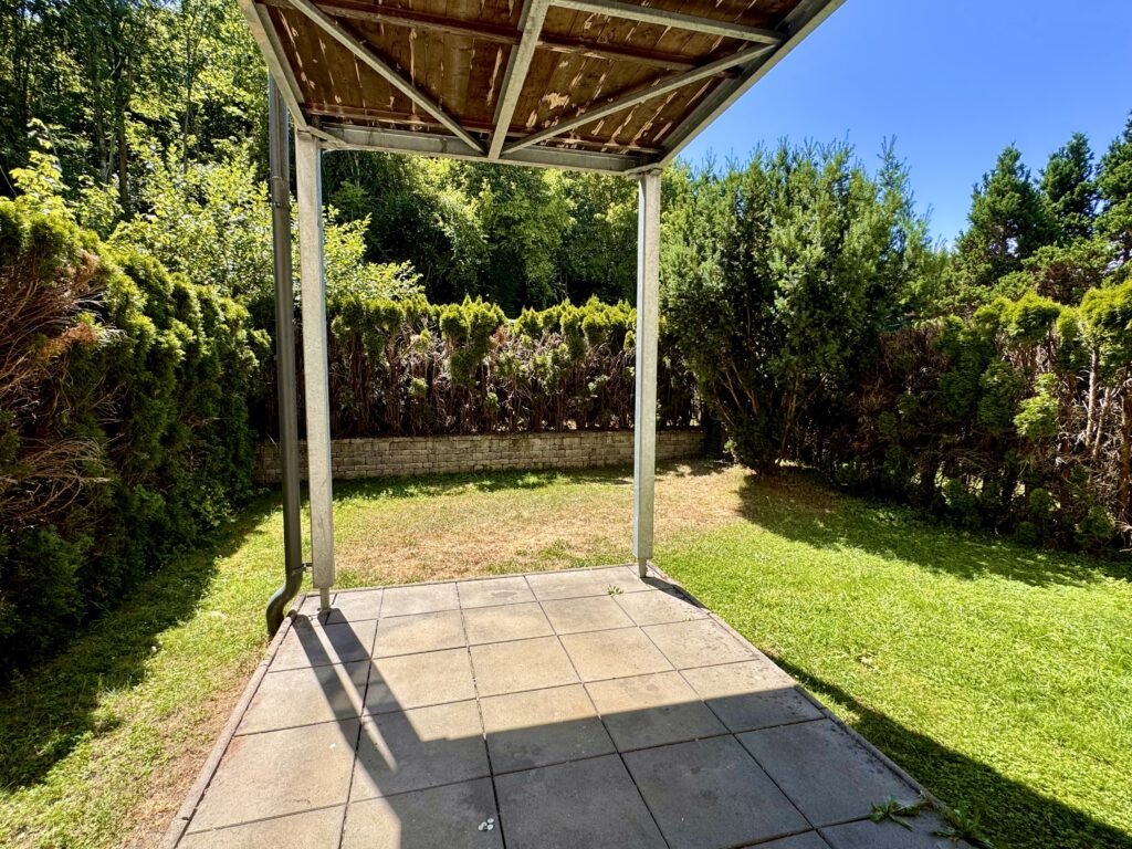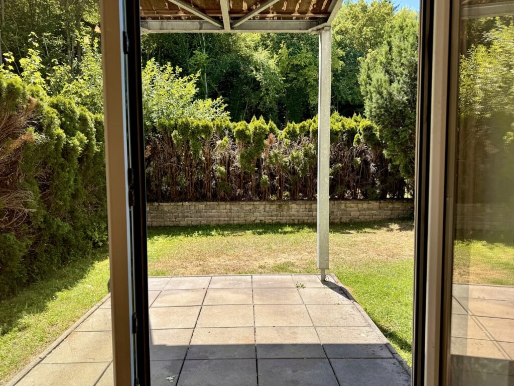 • über das Wohnzimmer gelangt man auf die überdachte Terrasse und den eigenen Garten, umgeben von hohen Hecken und einem niedrigen Zaun